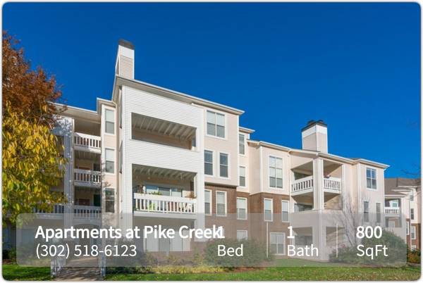 Description: Located in a beautiful setting that combines the comforts of home with superior resident services and outstanding community amenities, The Apartments at Pike Creek is Newark's premier garden apartment community. Our apartment homes were designed with your lifestyle in mind, so whether you choose our one bedroom, one bedroom with den, or two bedroom floor plan option, you will find the serenity and convenience of The Apartments at Pike Creek to be your refreshing paradise.