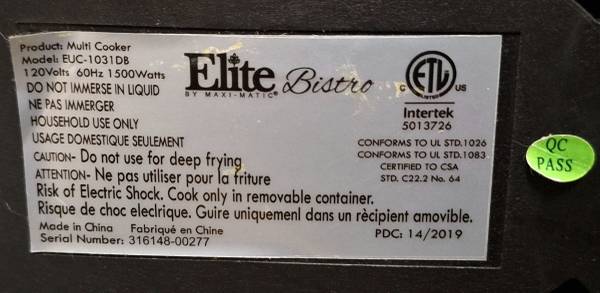 Elite Bistro by Maxi-Matic Air Fryer (Model EUC-1031DB) for Sale in Newark/New Castle area. 4.7-quart digital air fryer/multi-cooker in good working condition. Heats properly and includes the...