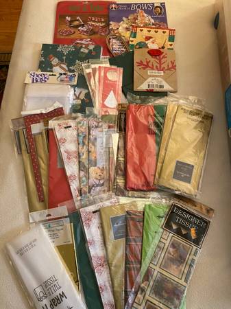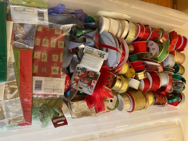 We are selling a huge lot of ribbon, gift bags and tissue paper.