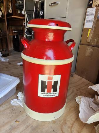 International Harvester themed milk can. Multiple coats of clear coat. Milk can itself is not dented. Condition is probably atleast a 9.5 out of 10.