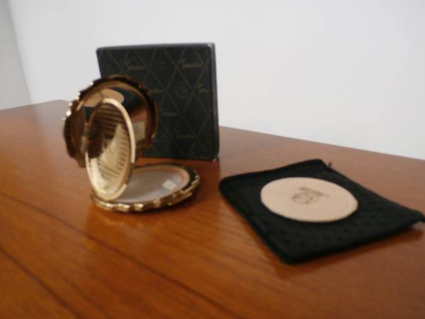 Kigu powder compact from the 50's with diamante design on lid. With black pouch in original box. Made in England. With Stratton powder compact 1960's. Brand new but has cracked mirror. Free with...