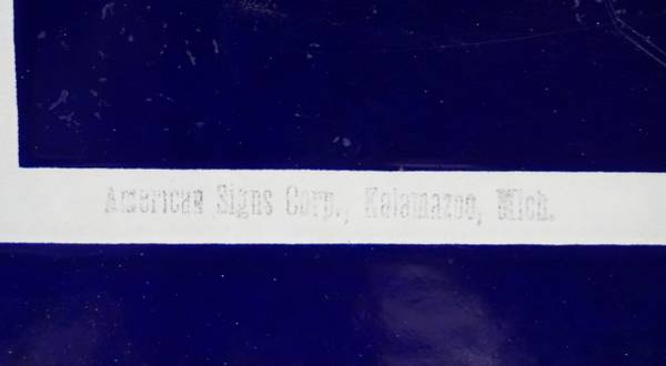 There is a maker's mark, in the lower left corner on one side, that reads, "American Sign Corp., Kalamazoo, Mich."