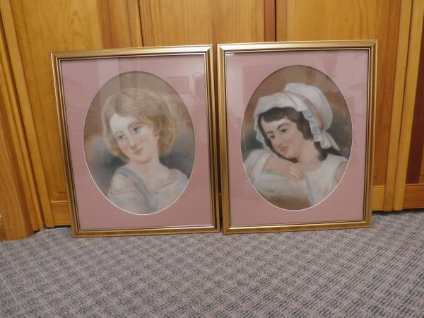 2 Antique portraits signed by Lizzie Thomas dated May 1863. Each sized 18" x 22". Frames replaced in 1992 but original mats are still intact (under replacement mats). These portraits are from South...