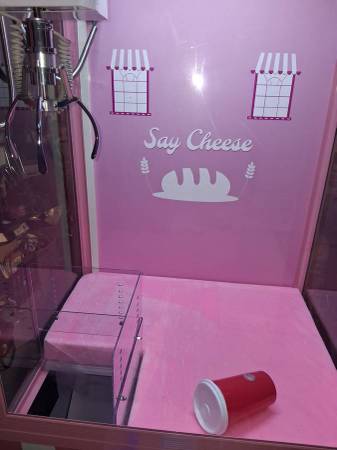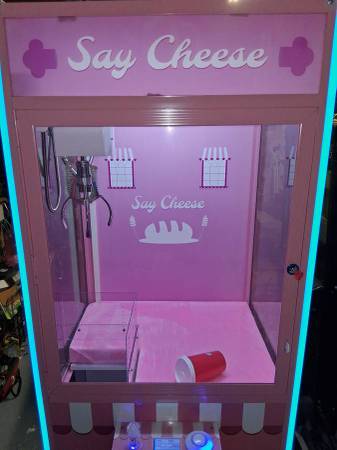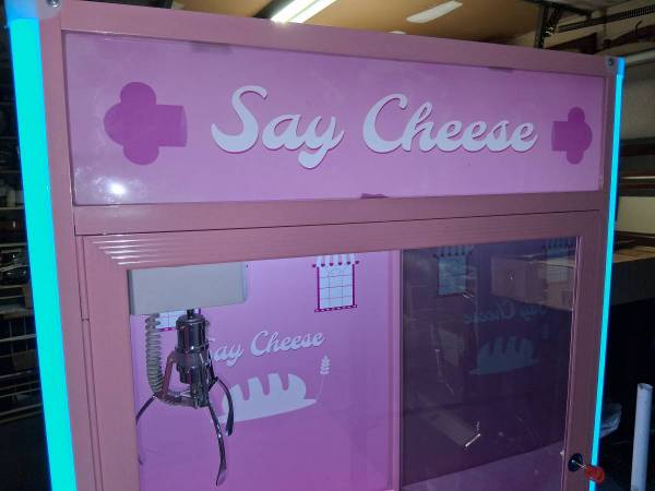 $1095 "Say Cheese" Bakery modern crane model 31in wide/76in tall 26in deep. Modern cpu system with color changing corner lights and joystick. Great looking machines- they are in excellent condition (3 available).