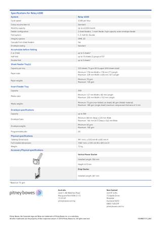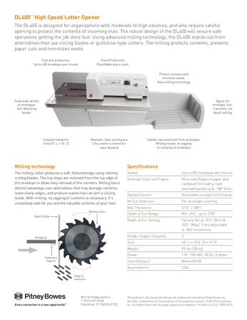 Pitney Bowes Mail System: Includes Pitney Bowes Relay 4500 Mail Machine, Pitney Bowes F70V Vertical Power Stacker, and Pitney Bowes DL400 Letter Opener. See pictures for specs