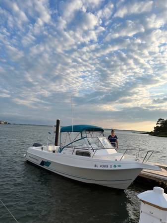 Aquasport 24 ft. Well maintained, clean, outriggers, newer upholstery, New water pump impeller, 2 captains chairs. In the water. Located at Sun Retreats Rehoboth Bay. Slip 18