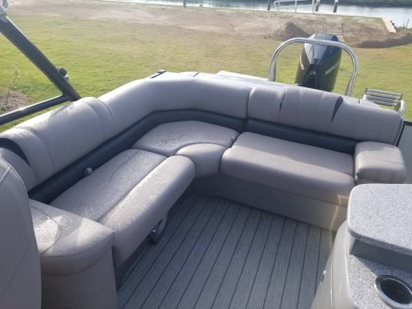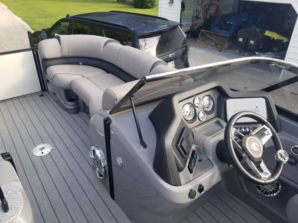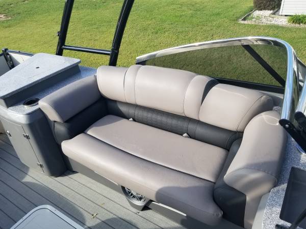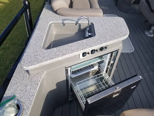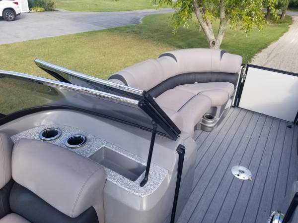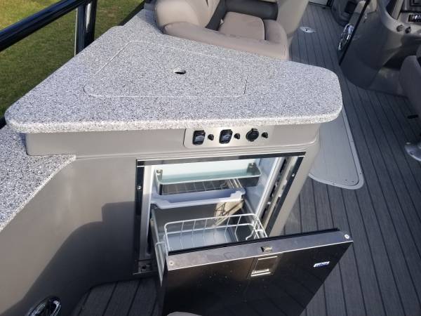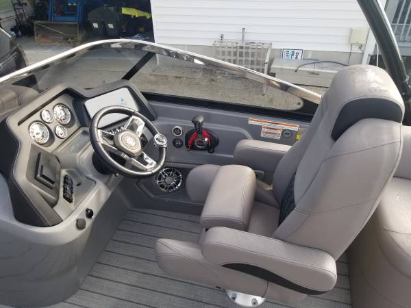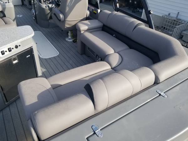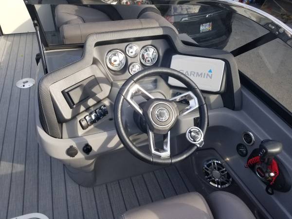 Arch mounted high tow point, deck mounted ski tow, arch mount Bimini canvas, full seat covers, center tube ski locker/storage, under seat trash can, front table, freshwater sink, fridge, windshield panel/wind-block, Garmin chart plotter, stereo, interior/exterior accent lights, etc.