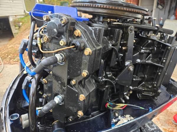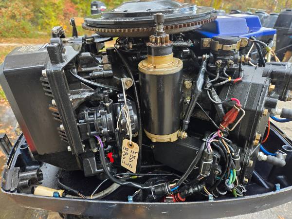 Just out of winterization and ran great on the hose. Great compression spark shifts throttles up idles pumps good water. Video avail little to no corrosion. Nice oldet motor. I never get any history so cooling fuel system service recommended. Comes with prop. Newark De