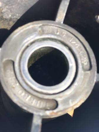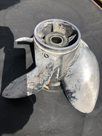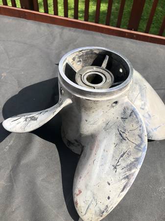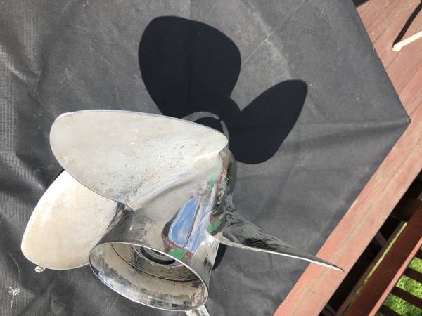 4 blade stainless steel propeller . M 14 1/4 x 22 Turbo 4x4 .....$75 cash you pick up . Has a clear coating on it.