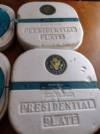 (10) Wheaton/Nuline Blue Limited Addition Collectors Plates in perfect condition.(8) have the original storage covers.This includes Presidents Eisienhower,Washington,Madison,Lincoln,F.D. Roosevelt ,John Adams ,Monroe,Van Buren Kennedy,and Taft.$180.00 Cash Only and sold as a set only.