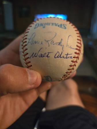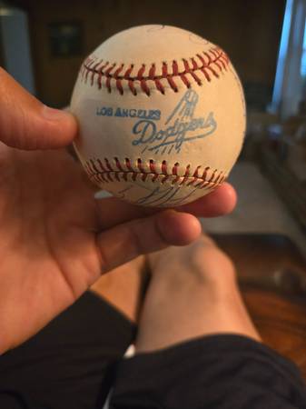 1970s dodgers baseball with 9 autographs including hall of famers Walter Alston and don Sutton, dodgers great Steve Garvey, burt hooten and Dave Stewart and more. Excellent condition, in protective...