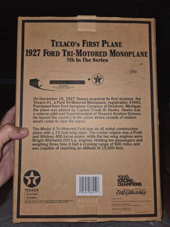 Brand new still in the box 1999 collectors edition Texaco 1st plane Ford tri moored monoplane. Only given to Texaco managers. Excellent condition Cash only No shipping