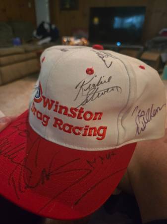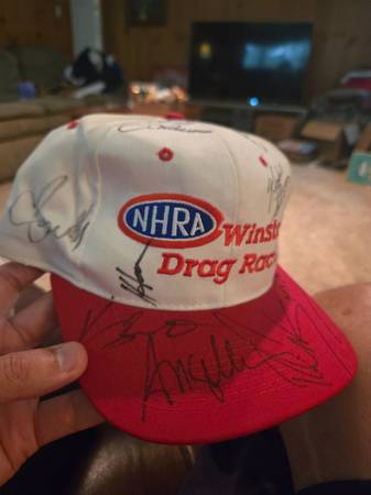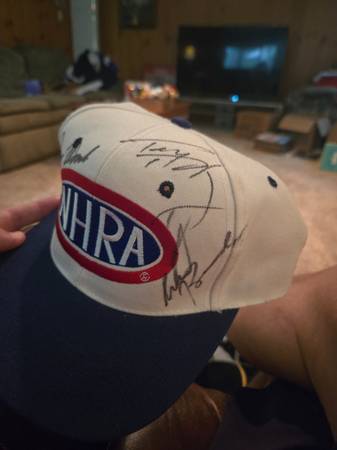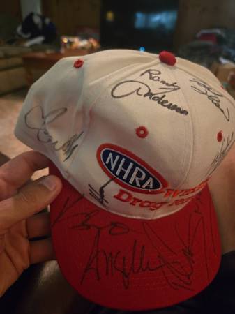 2 national hot rod assn hats with multiple autographs. Idk anything about car racing so don't know all of the signatures. $30 each or $50 for both. Cash only No shipping