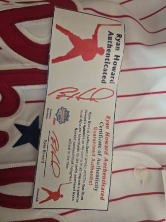 Majestic autographed phillies Ryan Howard Jersey with coa. Excellent condition Cash only