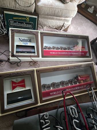 Multiple budweiser and bud lite neon bar sign plus other bar and beer signs. All in good working condition cash only No shipping text or call Dan for more information