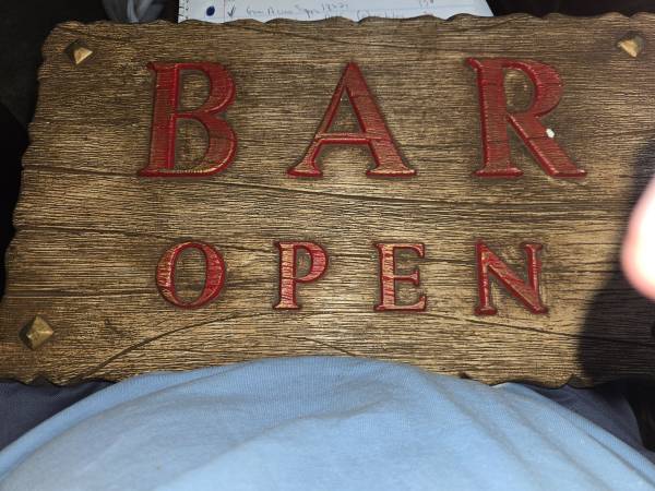Rustic fake wood bar open sign. Excellent condition Cash only No shipping
