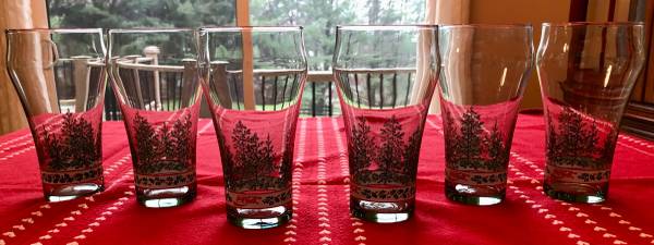 6 CHRISTMAS COCA COLA "HOLIDAY PINE" GLASSES. VINTAGE, NO CHIPS OR CRACKS - LIKE NEW