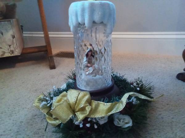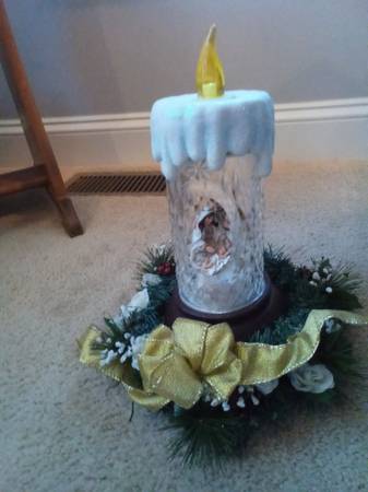 Reduced!! Was $90, reduced to $80. Reasonable offer considered. Retired Thomas Kinkade collectible, "True Meaning of Christmas". Includes wreath, nativity scene, candle cover and battery operated "flame". Never used, rescued from my aunts home. This is retired, but similar collectibles featured on Amazon start at $120+. Reasonable offers considered.Also includes the original Styrofoam packing container, ideal for shipping or storage.