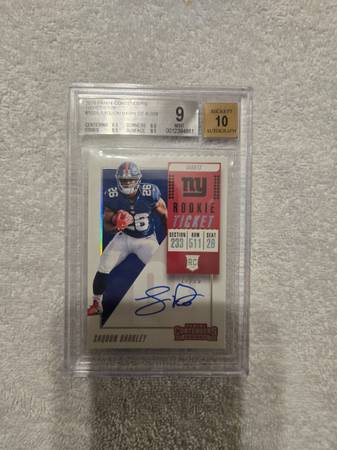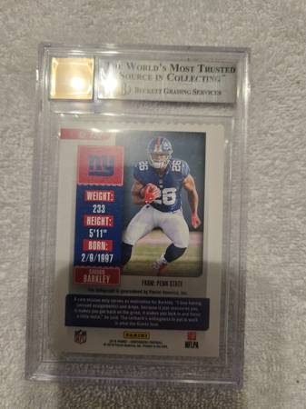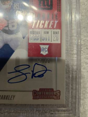 Beckett 9,auto 10 saquon barkley rookie ticket stub/26 right hand very rare .