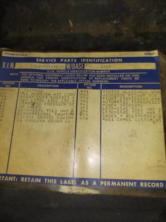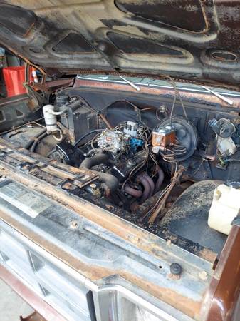 79 SIERRA GRANDE.NO TITLE .UNRESTORED .RESCUED FROM THE JUNK YARD .350 ,CAMSHAFT,EDELBROCK INTAKE,EDELBROCK CARB.HEADERS.NOT AS RUSTY AS MOST OF THESE EARLY YEAR SQUAREBODYS.WILL NEED FLOOR WORK AND ROCKERS ,CAB CORNERS.HAS NEW MASTER CYL,PROPORTIONING VALVE ,BRAKE LINES ON FRONT,FLEXIBLE LINES FRONT.BRAKES WORK .ITS RUNS GOOD ENOUGH TO BURN THE TIRES RIGHT THROUGH SECOND GEAR .AIR CAB, MISSING COMPRESSOR.P.S,P.B..INCLUDES 4 DEEP RALLY WHEELS WITH RINGS AND CAPS.RUNNING ON EXTERNAL FUEL TANK .I WOULD REPLACE TANK RATHER THAN CLEAN IT .INCLUDES NEW BATTERY.AS IS.TRUCK IS WORTH RESTORING OR FUN JUST ALL NASTY LIKE IT IS.FLOOR IS STUCK IN THERE WITH SHEET METAL SCREWS BUT ITS SOLID ENOUGH TO PUT YOUR FEET ON.TAILGATE RUSTY 2200 IS THE LOWEST AMOUNT FOR ME TO PART WITH IT.ALL TRANSACTIONS IN CASH AND IN PERSON.MIKE fOur FouR thREE fIVe fIvE thREE zER0 zERo nINE one