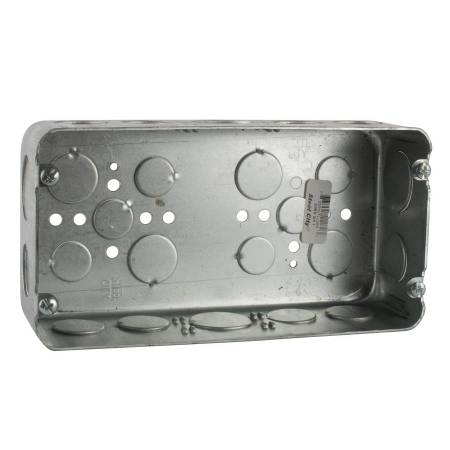 Steel 2-1/2 in. deep drawn gang box that includes (8) 3/4 - (8) 1 in. side knockouts and (6) 1/2 - (4) 3/4 in. bottom knockouts.