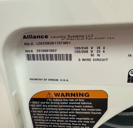 Ft. Capacity, 6 Dry Cycles, Electronic Homestyle Control, Reversible Door, Moisture Sensing Technology, Upfront Lint Filter, Permanent Press, Delicate, Time Dry, Quick Dry, Fluff Up, and ADA Compliant (This model is for Commercial Use Only. It is NOT to be installed in a Residential Setting)