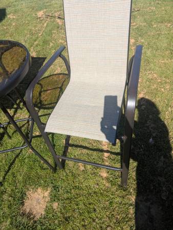 Tall table with two chairs. Tinted glass top table. Brand new