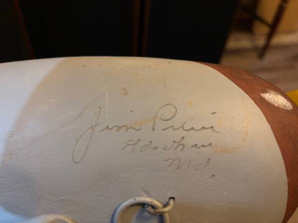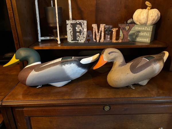 Pair of male & female hand carved mallard decoys. Excellent condition. Signed by artist Jim Pierce of Havre de Grace, MD Pick Up Rising Sun MD Cash Only