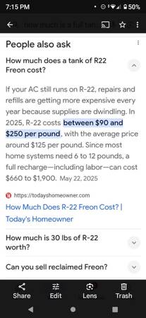 MAJOR SALE ON REFRIGERANT!! 20 LB MINT GREEN R22 REFRIGERANT/tank (not recycled) and sealed only asking $300 (Online it sells for about $90-250$ per 1 LB)!! 30 LB REFRIGERANT/tank Gray/Yellow...