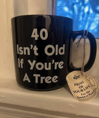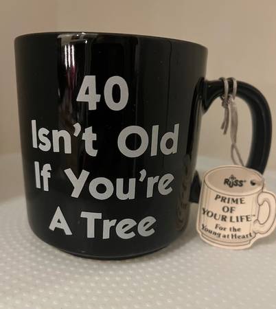 40TH BIRTHDAY COFFEE/TEA MUG "40 ISN'T OLD IF YOU'RE A TREE" BRAND NEW NEVER USED NO CHIPS OR CRACKS EXCELLENT CONDITION LARGE SIZE MUG