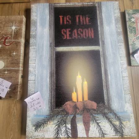 7 excellent condition Christmas pictures/wall decor. Most purchased at Kirkland's.