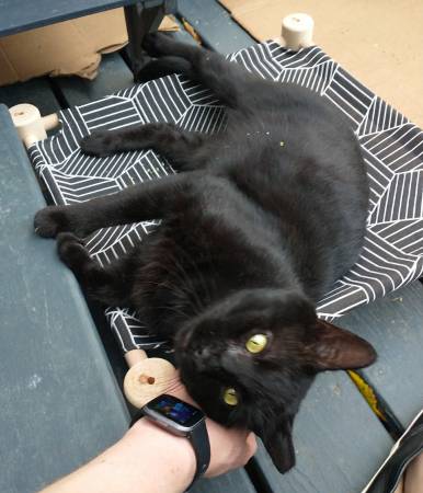 Looking for a home for this little guy. Bruce is a stray that we've been taking care of outside for a while. He would sleep on our porch and come and go as he pleased, consuming more cat food than both of my indoor cats combined eat. He disappeared for a few weeks and came back recently. Now he doesn't seem to want to leave. He has a tipped ear which he didn't have before, so someone may have taken him in and had him fixed (needs verified with a vet checkup). That could also explain why his desire to roam outside is completely gone. He just stays on our porch and cries until we bring him in. I've been letting him sleep in the basement at night.