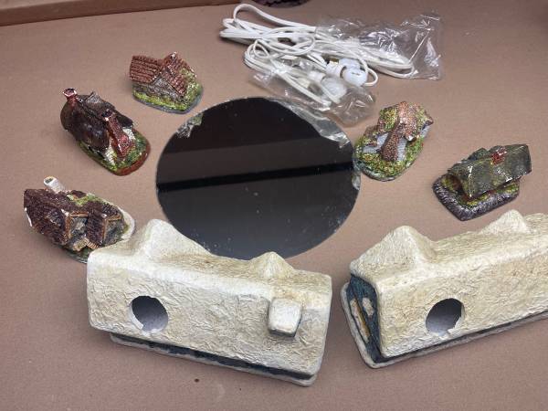 Miscellaneous Christmas decorations, cottages and ponds. Two cottages come with lights. $25 cash you pick up. Good condition.