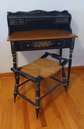 Rare Vintage Ethan Allen Hitchcock Ebony Writing Desk Including matching bench and matching ladder back chair In very good condition for it's age. Original, unaltered condition. MAKE AN...