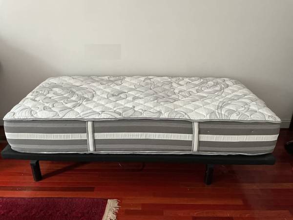 Barely used, firm twin mattress included. Can be raised and lowered via wireless remote. Very good Bed! Excellent condition, no signs of usage.