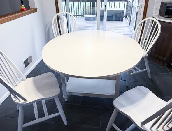 Purchased new. Have been used in great care. As you could see from the pictures. Excellent condition. Dinning table: $400 Chairs: $100each $760 for all.