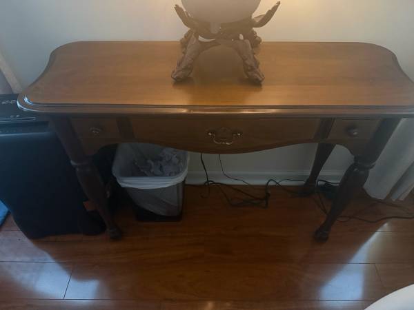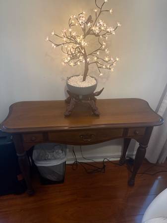 Beautiful solid wood Ethan Allen table measuring 42” long x 15” deep x 29” high.