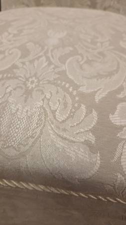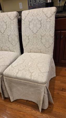 8 dining chairs. Comfy foam cushioned seats and backs. Color is off white with a subtle sage green undertone. Comes from a smoke free home. Just in time for Thanksgiving!