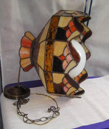 Tiffany-Style Hanging Lamp ...Stained Glass.... Rustic Tiffany Style......12" high x 50" round.....excellent condition......$45........ .....2 yrs old. (don't need; moving to furnished apartment)....