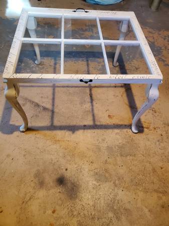 A very eclectic and charming coffee table made from an old six-pane window and four sturdy furniture legs. All pieces look like they were made for each other, both literally and figuratively. A...