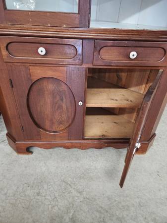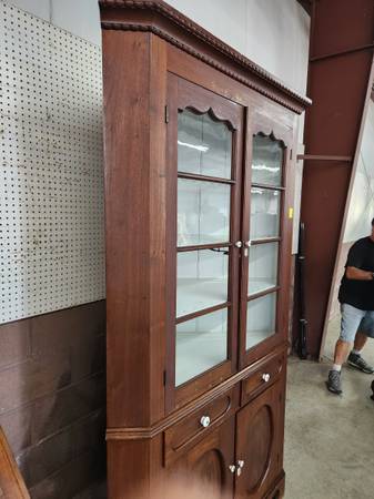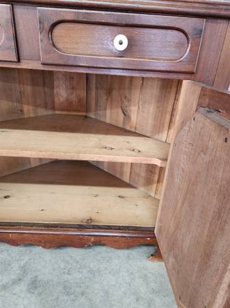 Victorian walnut corner cabinet missing 1 pane of glass Approximately 8' high
