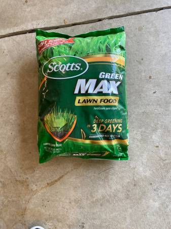 Scotts green max lawn food fertilizer covers 5000 sq ft. Never opened. Lowes sells this for $37!