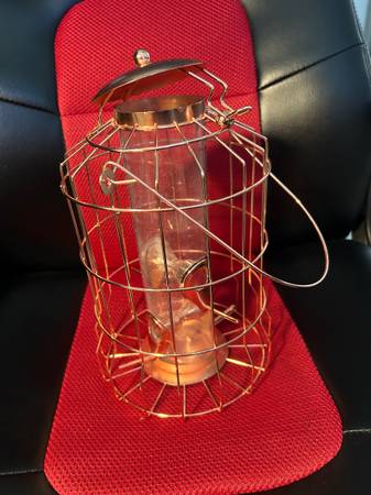 $10 for one Have (2) GRAY BUNNY Squirrel Proof Bird Feeders: Upgraded with a secure locking lid, reinforced springs, and chew-resistant metal construction, this rose gold bird feeder helps deter...