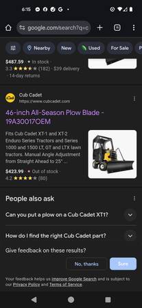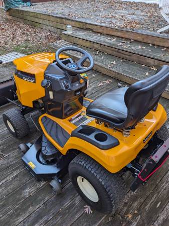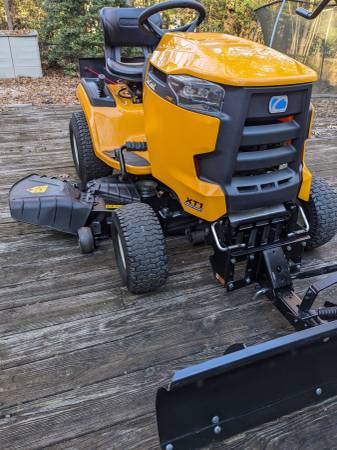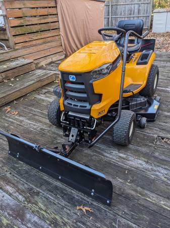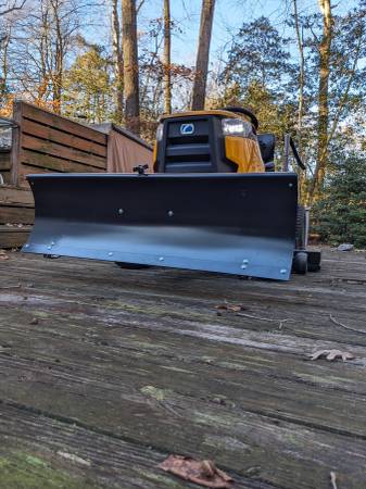 Cub Cadet has been maintained & cleaned yearly, garage kept. Fabricated 50" deck, 24hp Kohler vtwin. Snow plow / blade has never been used, installed so you can see it mounted. Folding rear...