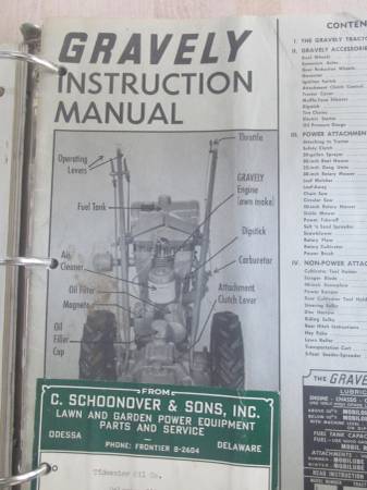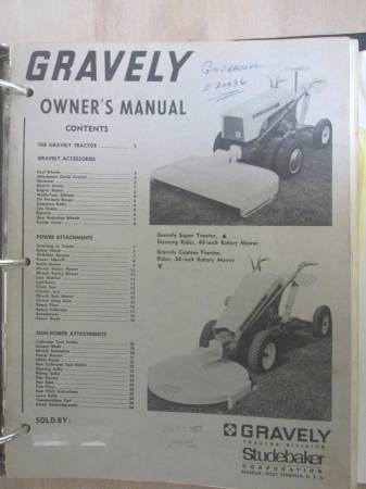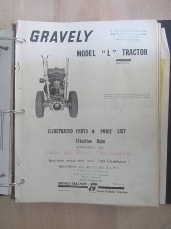 Up for sale is a model L walk behind gravely tractor, of the three models that year this is the intermediate model. The tractor has had one complete engine rebuild. At this time this tractor is being sold with an assortment of attachments, a two wheel sulky, a hitch attached to the tractor, comes with the two ball attachments for the sulky and a wagon, a rotary plow with wheels, a cultivator, a four foot wide plow blade, a square chute snow blower with attached wheels, gear reduction wheels, two sets of small diameter wheels with spacer weights for single or dual application, forty inch two blade mower deck, a Kemp shredder with gear box needing reconditioning, tire chains for the different size tires, there is also an assortment of various parts collected over the years. The sale also comes with all the service, parts manuals collected over the years. This is a large collection that has been stored inside and at this time being offered as one unit. Cash only in person, respond with a phone number in e-mail or it will be deleted without a reply. Ad will be removed when sold so any inquiry into weather it is available will be deleted also. Asking for directions and a phone # also gets deleted. Will not ship, do not ask. Thank You