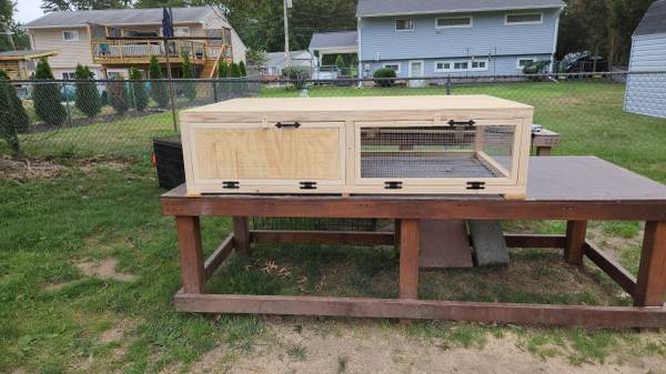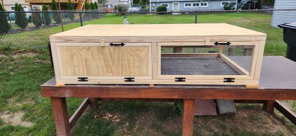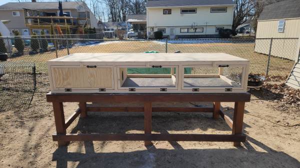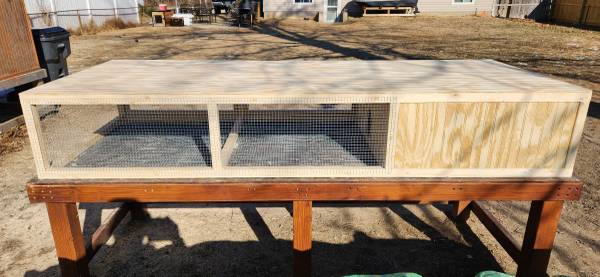 I also create a larger 93"L x 15"H x 36"D, three (3) section hutch. This hutch has one (1) covered roof, and two (2) screened in sections.