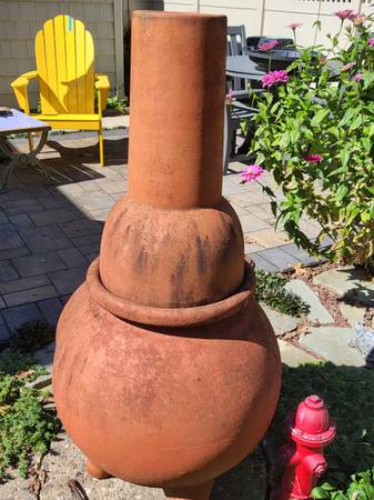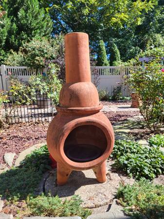 Outdoor chiminea for garden or patio. This is a genuine terracotta chiminea purchased in Sedona, Arizona. Contact for specific details or questions. Enjoy cool nights on your patio with small wood...