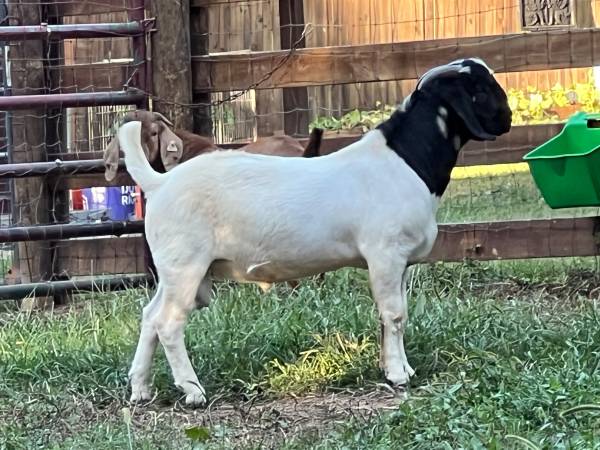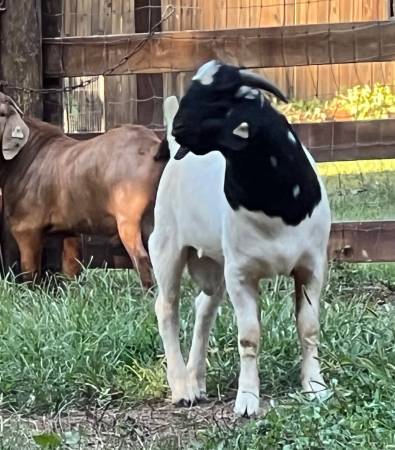 This buck has great genetics which include 2M Boer Goats Black Night, 2M Boer Goats Jim Bean, LK7 Black Label, ADVBG Unanimous Decision and his dam goes back to Copper Calling the Shots and Dura Max.