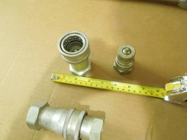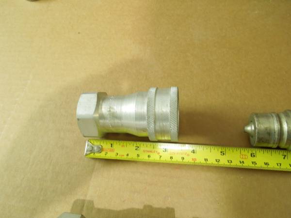 Aeroquip hydraulic couplers for sale. These couplers are manufactured in the United States, from solid steel bar stock. The coupler 3/4 NPT and nipple 3/4 NPT are a set and are sold as one. Buy one set for $39.oo or two sets for $70.oo ( SEE PHOTOS )