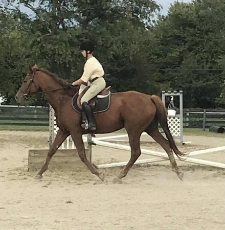 Elsie has been ridden English and western. She was a part of our lesson program for a while and will w/t/c and jump. She can be strong to the jumps, for that reason we'd recommend intermediate and up level riders. In her previous home, she was used as a trail horse.